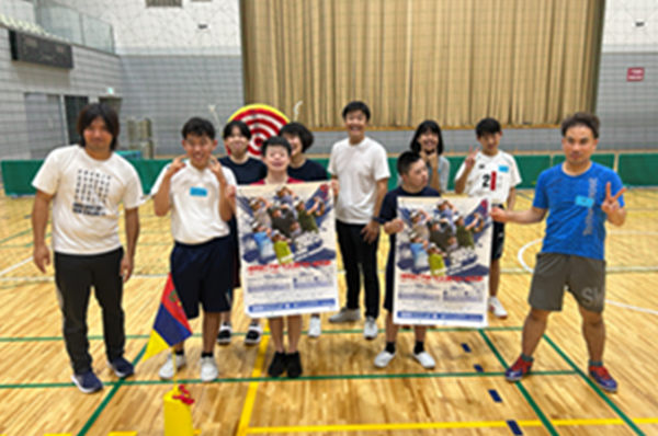 福岡県障がい者スポーツ協会が年間を通じて実施運営するスポーツ教室のプログラムとして「スナッグゴルフ」体験会を実施。クローバープラザ体育館にて、スナッグゴルフをつかった、スイングやショットを体験してもらいました。